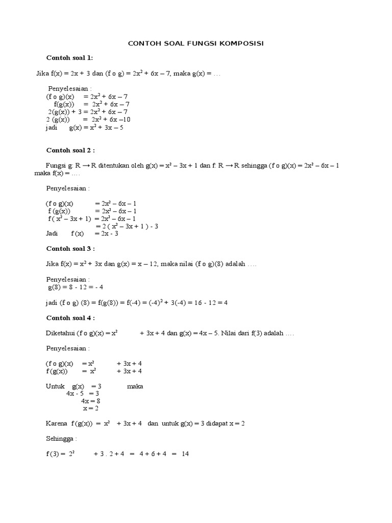 Contoh Soal Fungsi Komposisi Pdf. Berikut kami hadirkan beberapa contoh soal fungsi komposisi. Contoh Soal Fungsi Komposisi dan Jawabannya.