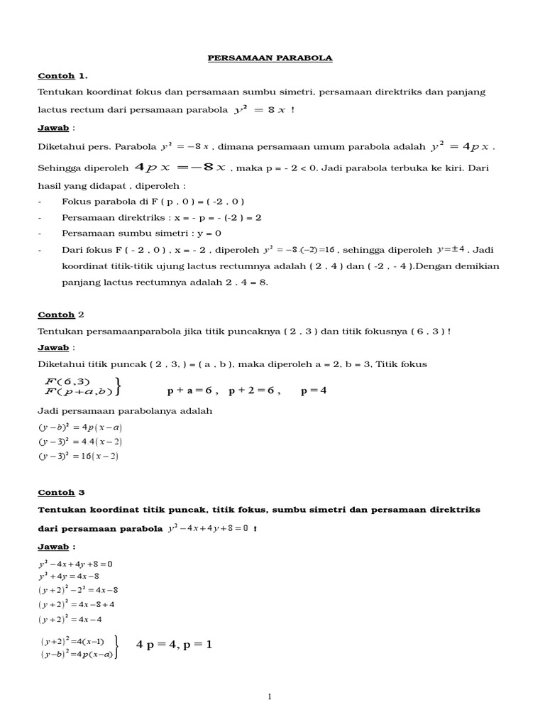 Contoh Soal Koordinat Titik Puncak Parabola - Berbagi ...