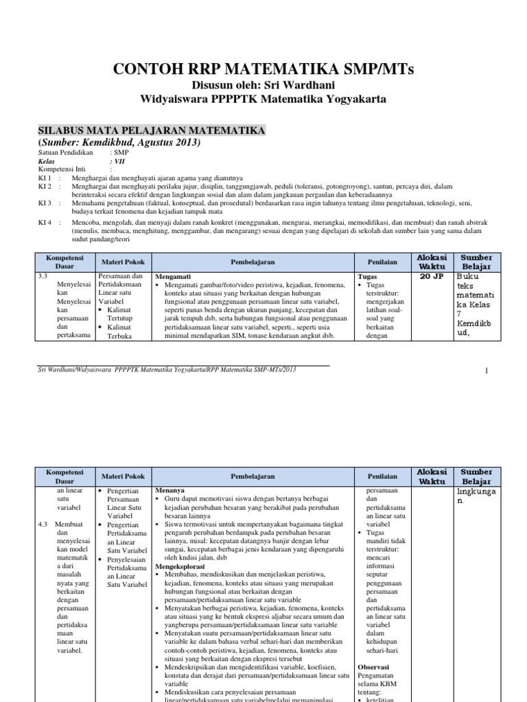 Contoh RPP kurikulum 2013 smp