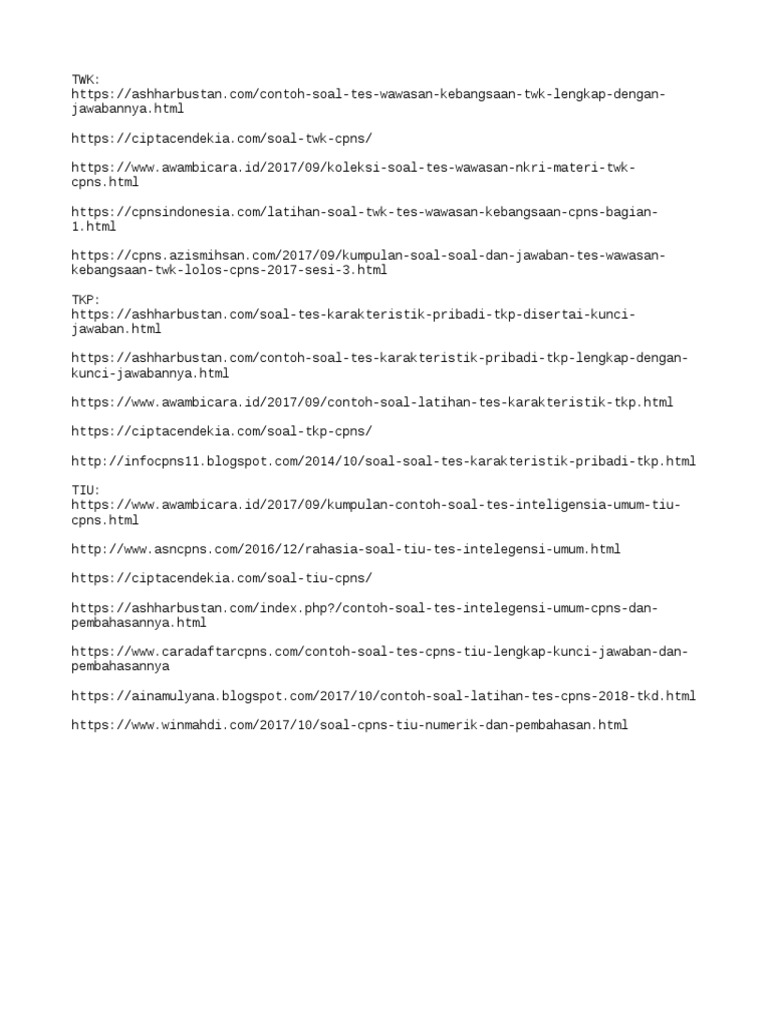 Contoh Soal Tes CPNS (TWK 2) - WARUNK ILMU (Noah Owens) Jika anda ingin yang lebih simpel dan mudah dipelajari karena menggunakan software. Contoh soal Tes Intelegensi Umum (TIU) Biasa disebut juga dengan potensi Akademik ialah untuk menguji dan menilai kompetisi pelamar dalam Kemudian Tes intelegensi umum ini juga merupakan salah satu tes yang digunakan untuk mengukur kemampuan intelaktual atau akademis seseorang. Contoh Soal CPNS - Tes Penalaran Analitis.
