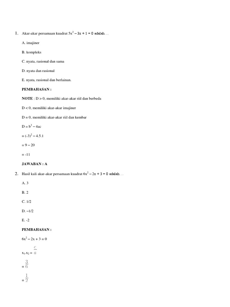 Kumpulan Soal Persamaan Kuadrat Dan Fungsi Kuadrat dan ...